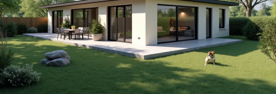 La rampe d’accès PMR doit présenter une pente inférieure à 5% sur une longueur maximale de 10 mètres, avec des paliers de repos tous les 10 mètres. Ces exigences peuvent nécessiter des terrassements importants selon la configuration naturelle du terrain. L’anticipation de ces contraintes dès la phase de conception évite des surcoûts ultérieurs et assure la conformité réglementaire du projet.